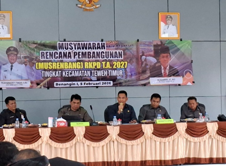 MUARA TEWEH – Anggota Dewan Perwakilan Rakyat Daerah (DPRD) Kabupaten Barito Utara menunjukkan komitmen penuh dalam mengawal arah pembangunan daerah melalui partisipasi aktif pada Musyawarah Perencanaan Pembangunan (Musrenbang) RKPD Tahun 2027 tingkat Kecamatan Teweh Timur. Kegiatan yang berlangsung di Aula Kecamatan Teweh Timur, Benangin I, pada Kamis (5/2/2026) ini dihadiri langsung oleh sejumlah legislator, yakni Hasrat, S.Ag, Jiham Nur, A.Md, dan Ardianto.
