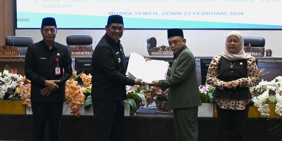 Senada dengan hal tersebut, Bupati Barito Utara, H. Shalahuddin, menegaskan bahwa semangat membangun daerah harus dibarengi dengan landasan hukum yang kokoh. Menurutnya, payung hukum yang kuat adalah instrumen utama untuk melindungi hak-hak rakyat sekaligus menjadi motor penggerak bagi Barito Utara agar mampu bersaing dan tampil lebih kompetitif di masa depan. Sinergi antara pemerintah daerah dan legislatif menjadi kunci utama agar seluruh Raperda ini dapat segera diimplementasikan demi kemajuan Bumi Iya Mulik Bengkang Turan.